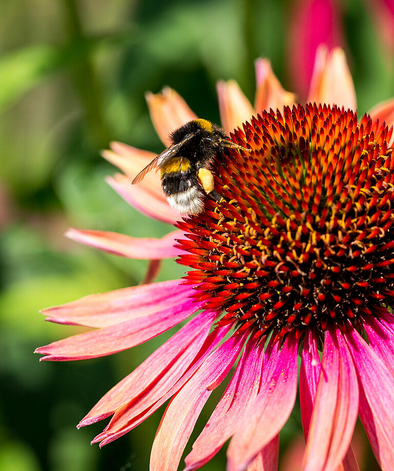 Hummeln sind sehr effektive und effiziente Bestäuber, da sie eine große Anzahl von Blüten pro Minute besuchen und mehr Pollen auf die Narbe übertragen als andere Bestäuber.