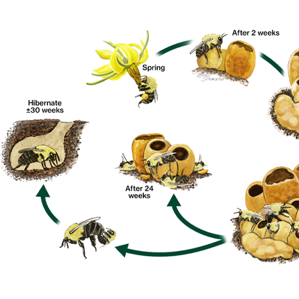 Diese neuen Königinnen paaren sich mit den Männchen, verlassen das Nest und der Zyklus geht weiter. Die alte Königin und ihr Nest werden im Spätherbst auf natürliche Weise sterben.