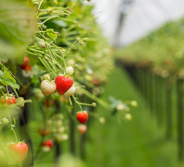 Die Gartenerdbeere Fragaria x ananassa mit ihren zahlreichen Sorten wird wegen ihrer schmackhaften Frucht in großem Maßstab angebaut. Die Gattung Fragaria gehört in die Familie der Rosengewächse (Rosaceae).