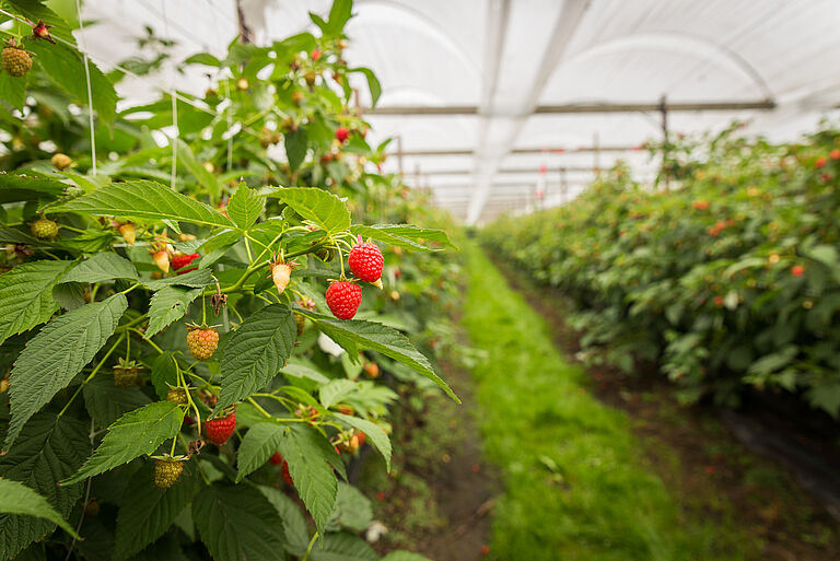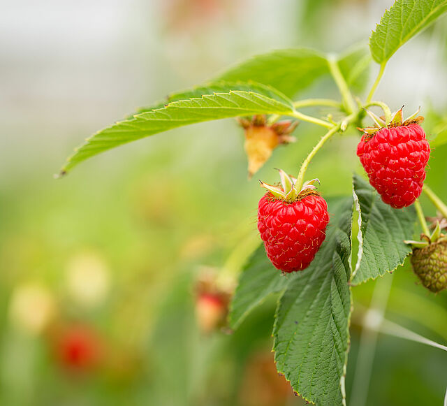 Die Frucht der Himbeerpflanze ist rot, aromatisch und süß, hat aber gleichzeitig einen etwas herben Geschmack. Mittlerweile gibt es auch gelbe und schwarze Sorten. Himbeeren sind eine saisonale Frucht und werden im Sommer oder Frühherbst produziert. Botanisch gesehen ist die Himbeere keine Beere, sondern eine Sammelfrucht zahlreicher kleiner Steinfrüchte um einen zentralen Kern herum (Sammelsteinfrucht).