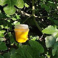 Verwenden Sie die Moskisan-Falle zur Überwachung und zum Fang der mediterranen Fruchtfliege in Kombination mit einem artspezifischen Köder.