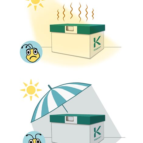 Schützen Sie das Hummelvolk vor extremer Hitze durch direkte Sonneneinstrahlung, vor allem bei warmer Witterung. Sorgen Sie für Schatten, indem Sie den Nistkasten beispielsweise in den Schatten der Pflanzen stellen.