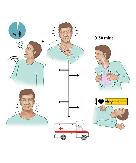 Neben einer starken allergischen Reaktion (Grad 4) kann eine schreckbedingte Hyperventilation zu Bewusstlosigkeit führen. Auch in diesem Fall ist der Notarzt zu alarmieren.