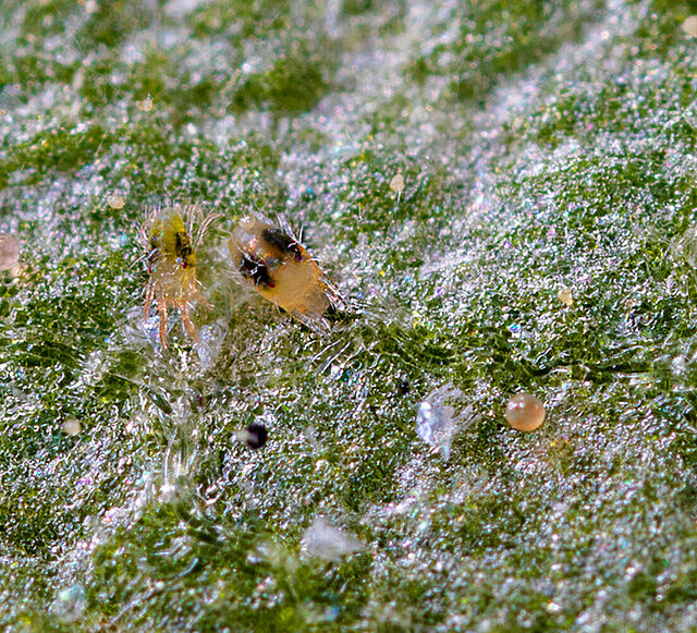 Spinnmilben und andere Milbenarten können Gewächshaus- und Freilandkulturen in kurzer Zeit stark befallen. Sie ernähren sich von Pflanzenzellen und verursachen Blattverfärbungen, Folge sind eine verminderte Photosynthese und geringere Erträge. Aufgrund ihrer schnellen Vermehrung ist ein frühzeitiges Monitoring und eine kontinuierliche Bekämpfung unerlässlich, um gesunde und produktive Kulturen zu erhalten. Bei der biologischen Bekämpfung von Spinnmilben und anderen Milben kommen verschiedene natürliche Feinde zum Einsatz, die auf unterschiedliche Entwicklungsstadien des Schädlings abzielen: