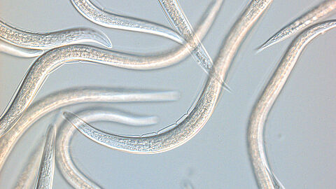 Nützliche Nematoden sind mikroskopisch kleine Rundwürmer, die sowohl im Boden lebende als auch Blattschädlinge parasitieren. Sie dringen in den Körper von Wirtsinsekten ein und setzen Bakterien frei, die den Wirt töten. Diese Nematoden sind wirksam gegen Schädlinge wie Engerlinge und Raupen.
