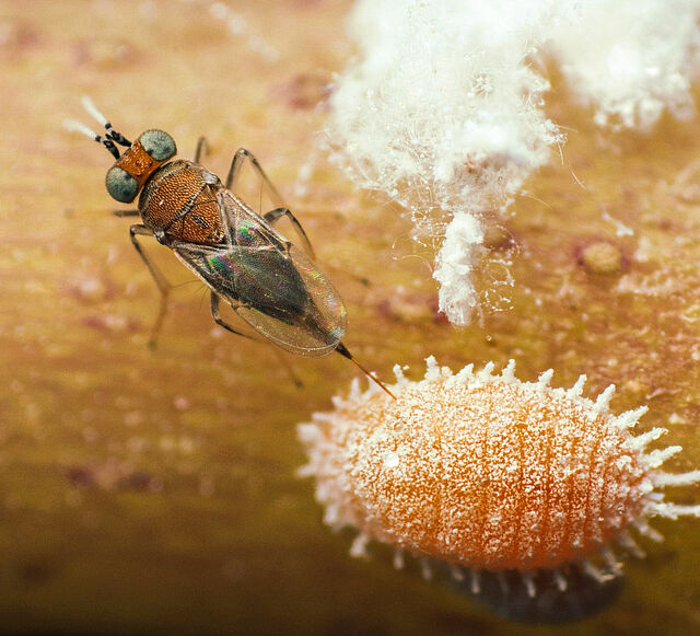 Parasitische Wespen sind eine vielfältige Gruppe von Insekten, die andere Insekten parasitieren und deren Populationen wirksam kontrollieren. Diese winzigen Wespen legen ihre Eier in oder auf den Körpern von Wirtsschädlingen ab. Wenn die Eier schlüpfen, ernähren sich die Wespenlarven von ihrem Wirt und töten ihn schließlich. Parasitische Wespen sind bei der Bekämpfung von Schädlingen wie Raupen, Blattläusen und Weißen Fliegen sehr nützlich.