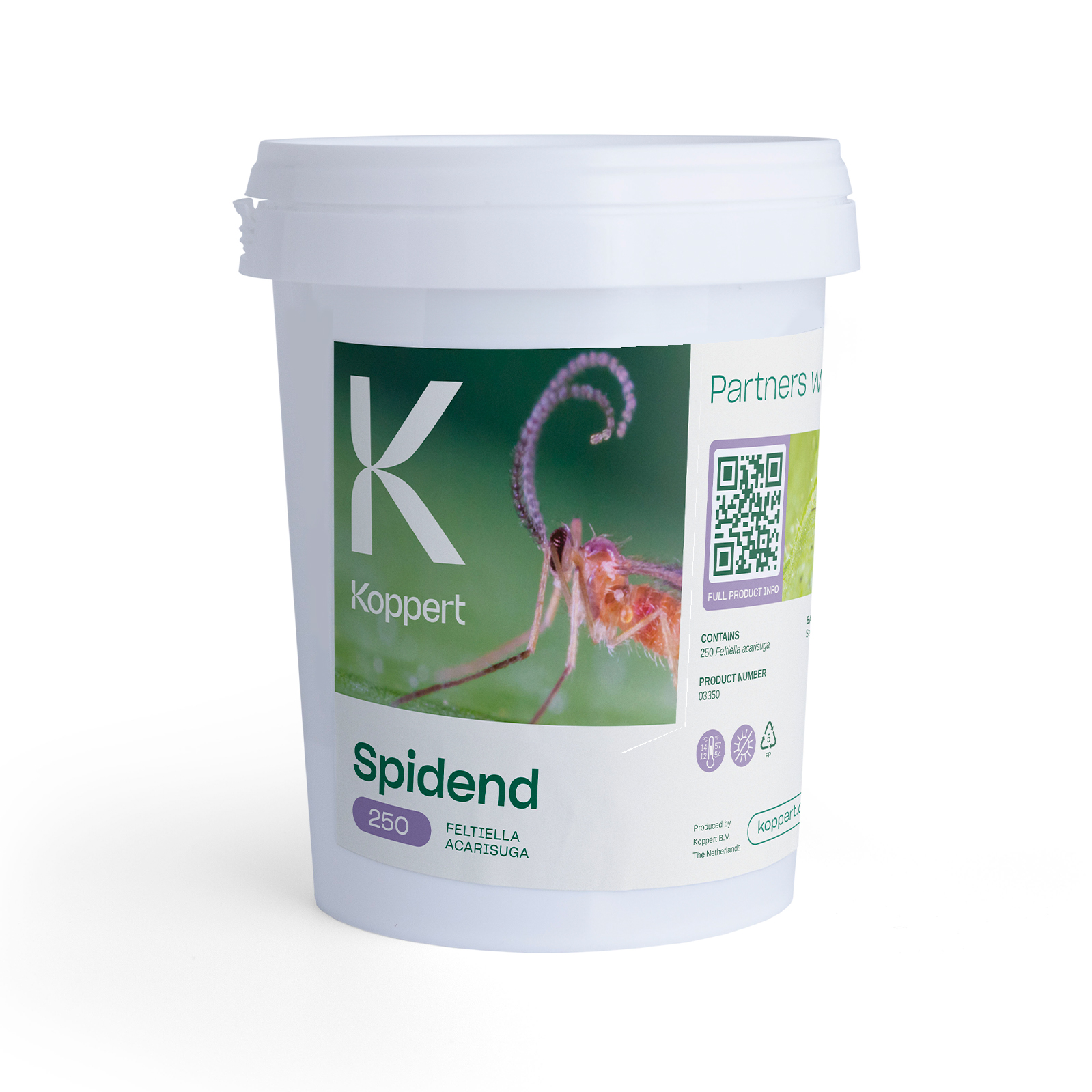 Die Dosierung von Spidend ist abhängig von Klima, Kultur und Spinnmilbendichte und sollte immer der jeweiligen Situation angepasst werden. Mit der Ausbringung beginnen, sobald die ersten Spinnmilben an der Kultur festgestellt werden. Ausbringungsmengen liegen in der Regel zwischen 0,25–25 pro m2/Anwendung. Die Ausbringung sollte mindestens dreimal in wöchentlichen Abständen oder bis zur erfolgreichen Bekämpfung des Schädlings wiederholt werden. Lassen Sie sich bezüglich der optimalen Anwendungsstrategie für Ihre Kultur von einem Koppert-Berater oder einem anerkannten Fachhändler für Koppert-Produkte beraten.